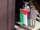 A cast member unfurls a Palestinian flag during a curtain call, prompting a brief scuffle as an official tries to take it away.