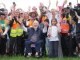 Sir Michael and Emily Eavis welcome hundreds of punters to "the most joyful city in the UK".